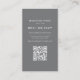 The grey back provides a subtle, elegant, and professional contrast, with fully editable fields for your name, title, phone number, email, address, and website, along with a customizable QR Code for fast, modern digital access.
