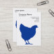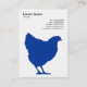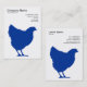 Um modelo de cartão de negócios com um símbolo de frango (Hen). Nome da empresa, tipo de negócio e endereço na frente com nome, cargo, telefonia, web e endereços de e-mail no verso, com o mesmo layout.