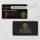 Um cobrir preto apresenta um símbolo elétrico de design de fiação. Na parte superior da placa há uma guia branca que contém o nome da sua empresa. As linhas verticais de fiação à esquerda suportam seu nome prestigioso com os detalhes de contato logo abaixo. No canto inferior direito está o logotipo da lâmpada dourada que você pode usar. No verso, num cobrir escuro, o logotipo dourado está no topo, seguido do nome comercial, dos dados de contato e do slogan. Um cartão feito para todos, especialmente para empresas elétricas. #eletricicicio #serviços elétricos #reparo eletroelétrico #símbolos eletroeletrônicos #iluminação #eletrocontratante #zazzlemade