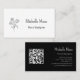 QR code Botanical floral business card, with a simple daisy design with a white and black background. With customizable lettering, you add your own information. You add your website to the QR code field for your customers to scan. Great for promoting your design business with an elegant style.