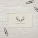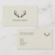 A simple business card with an elegant deer antlers illustration on a cream-colored background, with deep forest green texts. The design balances rustic natural imagery with contemporary design principles, perfect for outdoor, taxidermist, hunting, outdoor-related activities, or nature-based businesses.