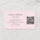 Cute and elegant business card with a pink bow on one side and a QR code on the back of the card. Illustrated and designed by Patricia Alvarez.