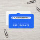A blue cover features a "search engine" motif at the top of the card where you can place your plumbing business name. Near the base is a slogan caption option which you can change alongside the contact details.