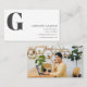 This business card features a large bold monogram initial with your name, title, and contact details on the front, and a full photo on the back — a great format for a realtor, coach, designer, or any professional who wants to put a face to their name.