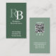 Cartão De Visita Simple Monogram QR Code Green | Connect with Me