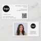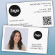 Simple photo, logo, QR code and custom text to promote your business and foster trust and recognition, with white details on a black background. Replace the photo, logo QR code website destination and text with your own to customize. Minimalist and professional for sales and marketing, corporate trade shows, networking and company introductions.