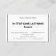 Este simples design de cartão de visita apresenta um nome profissional, um nome de clínica médica, um título de função profissional e detalhes de contato que podem ser personalizados. Cartões de visitas como estes podem ser utilizados por um profissional, como um médico de cuidados primários, um médico de família ou um cirurgião.