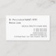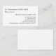 Este simples cartão de visita apresenta um primeiro e sobrenome, um nome clínico, uma profissão e informações de contato que podem ser personalizadas. Cartões de visitas como estes podem ser utilizados por um profissional, como um médico, um cirurgião ou um médico de cuidados primários.