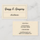 Este simples, simples e limpo design de cartão de visita apresenta um fundo bege claro, uma borda dupla com uma linha tracejada entre si e uma linha de formas de triângulo. Pode ser utilizado por um profissional como cabeleireiro ou cabeleireiro. O nome, profissão e contatos podem ser personalizados.