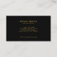 Cartão de visita elegante com bordas falsas de ouro e fonte típica de tipografia em fundo preto. Você pode personalizá-lo com seus próprios detalhes. Um olhar clássico profissional moderno.
