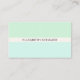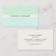 Uma simples, moderna, minimalista verde-menta-clara, azul-aqua-claro e design de marfim dá uma primeira impressão profissional ao seu negócio. A frente do cartão de visita apresenta o nome do seu cheio em uma faixa de marfim. O verso tem espaço amplo para seu nome, título profissional, descrição de negócios e informações de contato. A tipografia azul indigo dá a esta cartão de visita um olhar limpo e moderno. É fácil personalizar.