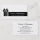 Um simples cartão de visita de butique preto e branco com uma caixa de presente moderna amarrada com um arco feminino. Personalize adicionando o nome de seu site de negócios e de negócios on-line.