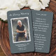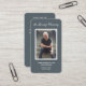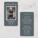 Um simples cartão memorial azul de aço apresenta "In Loving Memory" com a foto, o nome e as datas de morte por nascimento de seu ente querido e um poema ou oração nas costas. Lindo por um tesouro, serviços funerários e celebração de memorial de vida.