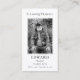 Cartão de oração para memorial de fotos simples e elegante para se lembrar do seu amado. A parte frontal contém o texto "In Loving Memory" (Em memória adorável). Personalize o resto do texto e da foto. Adicione uma oração, um texto inspirador ou um poema ao fundo.