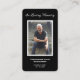 Um simples cartão memorial preto-e-branco apresenta "In Loving Memory" com a fotografia, o nome e as datas de morte por nascimento do seu ente querido e um poema ou oração nas costas. Lindo por um tesouro, serviços funerários e celebração de memorial de vida.
