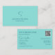 Cartão De Visita Simples Teal Simples com Monograma e Código QR Mod