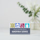 Um design com quatro ícones de construção mostrando os tipos de serviços que você pode oferecer, por exemplo: O motivo folha para jardinagem paisagística, a casa azul para reparos domiciliários, o ponto de conexão elétrica para serviços elétricos e a gota d'água para canalização. A camada azul escura abaixo abriga seu nome prestigioso e o nome comercial "HANDYMAN SERVICE". No verso, em um cobrir branco, no topo está um logotipo da paisagem dourada que você pode usar. Abaixo deste logotipo está o nome comercial, os detalhes de contato e uma legenda de slogan que você pode mudar. Um cartão para o trabalhador, os empreiteiros a usar. #handyman #construcder #contratante #remodelador #empreiteiro #construtor #homerepair #generalcontratante #handymantools #homerepaircontratante #zazzlemade