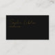 Um cartão de visita elegante e preto com campos para nome (estilo de fonte manuscrito), profissão, número de telefone e email... para um primeiro contato do na moda.