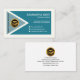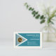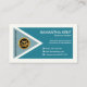 A placa apresenta um triângulo de cor ciano e um design de polígono. No topo está seu nome prestigiado e cargo, ao lado de uma opção de slogan perto do centro. Em direção à base estão os detalhes de contato abrigados por botões de triângulo. Um logotipo dourado e seu nome comercial estão anexados ao triângulo à esquerda.