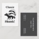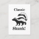 Skunk Animal Funny Business Card originally designed by Nisha Prabhu. Fully Customizable. Personalize with your details. Make a memorable impression with our whimsical skunk animal business card! Featuring a charming and humorous skunk design, this card combines professionalism with a playful twist. Perfect for entrepreneurs, pet-related businesses, or anyone looking to stand out with a touch of humor, it’s sure to leave a lasting smile and spark conversations. Add a little fun to your professional image with this unique and eye-catching card!