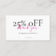 Cartão De Visita Small Business Thank You Discount Card Blush