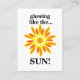 Sol brilhando como o Cartão de visita do Sol original design por Nisha Prabhu. Totalmente personalizável. Personalize com seus detalhes. Faça uma impressão radiante que suprime a competição! Nossa cartão de visita de "Sol brilhando como o Sol" captura a essência do calor, positividade e brilhantismo. Com seu design vibrante que lembra um céu iluminado por sol, este cartão é perfeito para aqueles que querem espalhar sua luz no mundo dos negócios. Motim solar que chama a atenção e que desenhar a atenção e irradia energia. Quer esteja a trabalhar em rede em eventos, a encontrar clientes potenciais ou a partilhar a sua marca com amigos, este cartão deixa certamente uma impressão duradoura. Brilhe brilhante com um cartão de visita que reflete o espírito vibrante de sua empresa!