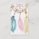 Cartão de visita de instrutor de ioga moderno, boho, dragão pintado manualmente com miçangas e penas em cor rosa pastel, turquesa, aquarela laranja, a cor de fundo é totalmente personalizável