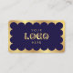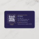 Cartões de negócios elegantes e chic em azul marinho e ouro com borda estilosa, fonte retrorada e código QR digitalizável. Crie cartões de visita modernos para seu salão de beleza ou spa, boutique ou qualquer outro negócio usando este falso design de cartão de efeito folha de ouro. Adicione seu código QR, logotipo, detalhes de contato para fazer cartões profissionais.