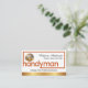 An all white cover features a brown handyman border frame with a gold tab near the base. Inside the frame you have your prestigious name and the phone contact with a gold home roof-electric saw logo you can use. Near the base is a slogan caption which you can change.