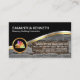 Design apresenta uma camada de parede de tijolos antiga com um design de ouro e onda prateada acima. Andar na onda dourada-prata é o logotipo dourado "ventilador de pintura doméstica" que você pode usar. No canto superior está seu nome prestigioso e cargo. Perto da base, numa área de corte do muro de tijolos, está o nome comercial e os seus contatos. No verso, num cobrir branco, o logótipo dourado está no topo. Logo abaixo está o nome da empresa e os detalhes de contato. Este cartão seria excelente para os que trabalham com alvenaria, construção, reparação de casas, etc. #empreiteiro de construção #construtor #melhorador de casa #homerenovação #construção #arquiteto #remodelação #tijolo #muralha #empreiteiro geral #renovação #trabalhador #trabalhador #pedreiro #pedreiro #zazzlemade