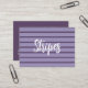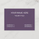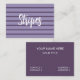 Cartão de visita de padrão de stripes roxas desenhado por Nisha Prabhu. Totalmente personalizável. Personalize com seus detalhes. Faça uma declaração ousada e memorável com estes cartões de visitas de padrão de listras roxas. O design apresenta uma disposição chic e moderna de listras roxas, acrescentando um toque de sofisticação à sua imagem profissional. Quer você esteja trabalhando em rede em conferências, reuniões ou eventos, esses cartões de visitas certamente se destacarão e farão uma declaração sobre seu estilo e profissionalismo. Aumente a marca da sua empresa com estes cartões de visitas de padrão de listras roxas que chamam atenção.