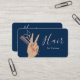 Make a lasting impression with this luxury hairstylist business card, crafted for beauty professionals who value elegance, confidence, and modern branding. Designed with a sleek navy blue background, refined rose-gold typography, and a stylish hand illustration holding professional scissors and a comb, this card instantly communicates creativity and expertise.