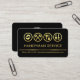 An all black cover is accentuated by a faux gold line near the base of the card. Over at the top are gold handyman tools logo which you can use. The tools can represent some of the services that you offer eg. The hand drills can be for carpentry, the hammer for home repairs, the brush-scrapper for painting an the trowel-fork for landscaping-gardening. Their usage is left to your own interpretation. Below the logo is the business name "HANDYMAN SERVICE" which you can change with the contact details near the base.