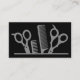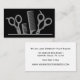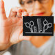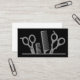 Tesoura e Design minimalista preto e branco. Faça uma primeira impressão ousada com este cartão de visita personalizado de cabelos estilista com um fundo preto elegante com tesouras brancas icônicas, pentes e ferramentas de estilização. O design minimalista é perfeito para mostrar sua profissão, enquanto o verso oferece espaço para seu nome de salão, informações de contato e site. Ideal para cabeleireiros, barbeiros ou profissionais de beleza que querem um cartão moderno, profissional e na moda para representar a sua marca. Perfeito para eventos de rede, consultas de cliente ou lembretes de compromisso.