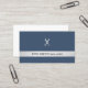 Modelo de cartão de negócios elegante com fundo azul escuro, padrão de tesoura prateada falsa e faixa. Design mínima, elegante. Perfeito para cabeleireiro, salão de beleza.