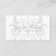 Simples com elegância profissional descreve este cartão de visita subtil sofisticado do damasco com uma luz - fundo cinzento do flourish do damasco. Este cartão de visita na moda e moderno é perfeito para um boutique de gama alta ou um campo criativo tal como o design de interiores e pode facilmente ser personalizado com seus detalhes do negócio. Para mais opções da personalização, clique sobre a personalização ele botão.