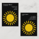 Um modelo de cartão de negócios com símbolo do Sol. Nome da empresa, tipo de negócio e endereço na frente com nome, cargo, telefonia, web e endereços de e-mail no verso, com o mesmo layout.