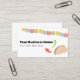 Este cartão de visita personalizado apresenta um design de restaurante tacos mexicano. À direita, coloca-se uma imagem em forma de aquarela de um taco, com pimentos de pimenta vermelhos e verdes colocados sobre ele. Uma faixa colorida de bunting mexicana acentua a parte superior. As informações de contato da empresa ou da empresa são impressas no verso.