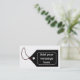 Um Tag do preto do tamanho do cartão de visita com uma beira branca contra um fundo branco. Adicione-o em seu convite como um lembrete extra da mensagem. Preencha sua mensagem personalizada.