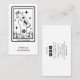 Tarot pet groomer business card in crisp black and white, featuring a hand holding clippers above a small paw print, framed like a tarot card with stars and flowers and the words The Pet Groomer at the base, with your name set in simple modern type beneath the artwork and your phone, email, website, location, and social media icons arranged cleanly on the back so pet salons, mobile groomers, and stylists can share contact details in a look that feels both mystical and professional, easily customized with your own information.