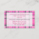 Cartão De Visita Tartan cinzento cor-de-rosa da xadrez