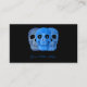 Estas cartões de visitas profissionais para artistas de tatuagem apresentam três crânios azuis góticos com fundo preto. Criativo, único, assustador, assustador, modesto, moderno estilo de vintagem artístico. Imagem copyright Marg Seregelyi Fotografia.