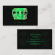 Estes modelos de cartão de negócios profissionais para tatuadores apresentam três crânios verdes góticos com fundo preto. Criativo, único, assustador, assustador, modesto, moderno estilo de vintagem artístico. Imagem copyright Marg Seregelyi Fotografia.