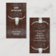 Estes cartões de visitas verticais compres de tatuagem apresentam um crânio de touro rodeado de rodeio, a oeste, com um design de fundo branco castanho. Vintage antigo campo rural, estilo o velho oeste selvagem inspirava legal tema animal fazenda. Imagem copyright Marg Seregelyi Fotografia.