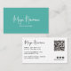 Cartão De Visita TEAL AZUL Moderno Elegante Mínimo Código QR Criati