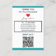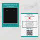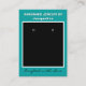 Handmade Jewelry typography at top in white. Name in white against teal blue background. Crafted with Love written in black script (keep or insert short tagline, or delete to leave area blank). Name will appear on front and backside. Two Small Circles against black and white framed background. NOTE: Circles are not pre-cut, you will need to use a small hole punch to make clean cut holes, to then place your Earrings in. Backside has small red heart. Insert telephone number, email address, website, social media handle. Insert Your Business Website QR Code for customers to Shop 24/7, or delete as needed. Original Design by TamiraZDesigns.