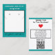 Handmade Jewelry by Name typography in white. Teal color background. Crafted with love written in black script (keep or insert short tagline, or delete to leave area blank). Two Small Circles against white and black framed background. NOTE: Circles and Lines on each side are not pre-cut, you will need to use a Small hole punch, and scissors or box knife cutter type to make clean cut holes and Small slits, to then place your Earring Studs and Necklace in. Backside has small red heart. Insert telephone number, email address, website, social media handle, as needed. Insert Your Business QR Code for customers to Shop 24/7, or delete as needed. Original Design by TamiraZDesigns.