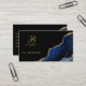 Uma versão exclusiva de uma folha abstrato azul preta e dourada agate geode nail technical cartão de visita com uma assinatura inicial e de script elegante. Único, moderno e na moda.