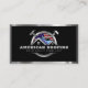 Apresentando uma cartão de visita de uma empresa de construção de telhados de na moda de luxo, projetada para deixar uma impressão duradoura. Ele apresenta um logotipo elegante de bandeira patriótica americana prateada em fundo preto com um código QR. Este design capta a essência de um negócio profissional de alta escala. Você pode personalizar o cartão com seu nome, informações de contato, nome da empresa e slogan. Com esta carta na mão, você se destacará da competição e fará uma primeira impressão memorável. Alcance sua empresa para o próximo nível! (Nota: Este logótipo não pode ser vendido separadamente e só pode ser transferido para outros produtos no zazzle.)