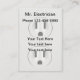 cartão de visita perfeito para um eletricista projetado com uma imagem gráfica de uma tomada elétrica duplex impressa no plano de fundo, para que suas informações comerciais se destacem. Projetado para um eletricista licenciado ou eletricista independente com uma frota de funcionarios. Apresentado em cartões de visitas de formato maior que o tamanho padrão neste formato vertical.